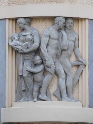 Socha voraře na rohu ulic Pod Slovany a Ladova
