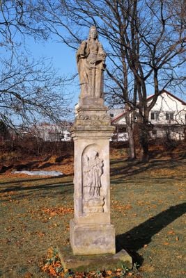Socha sv. Barbory v zámeckém parku zámku Hrubý Rohozec v Turnově, statue in Turnov, Czech Republic