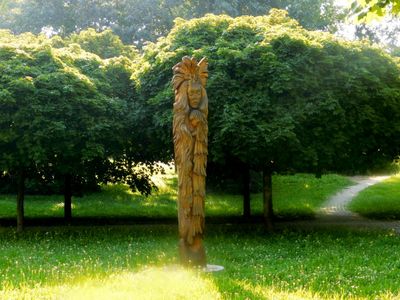 Plastika Maasdammer v parku před poliklinikou v Otrokovicích