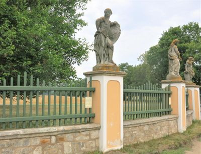 Alegorická socha Srpen v ohradě zámecké zahrady ve Veltrusech