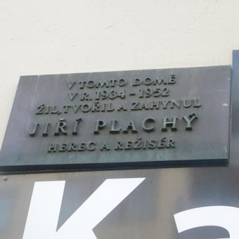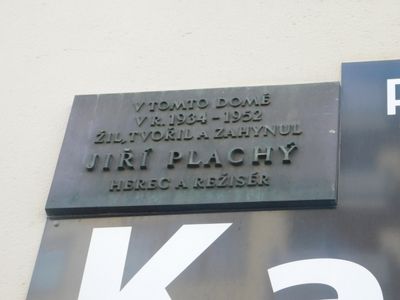 Pamětní deska Jiřího Plachého na domě Chrudimská 2158/5 na Vinohradech