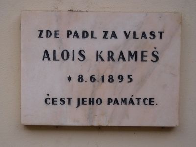 Plaque to Alois Krameš, plaque in Prague