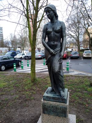 Socha "Po lázni" v Řepích, statue in Prague, Czech Republic
