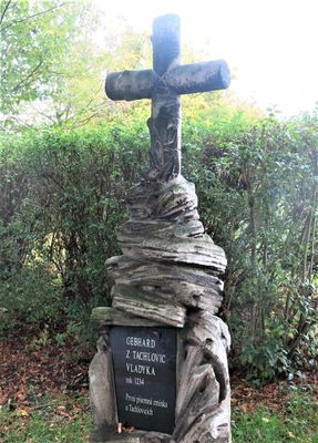 Gebhardův kříž naproti obecnímu úřadu v Tachlovicích, pamětní kříž v obci Tachlovice, okrese Praha-západ