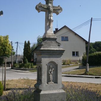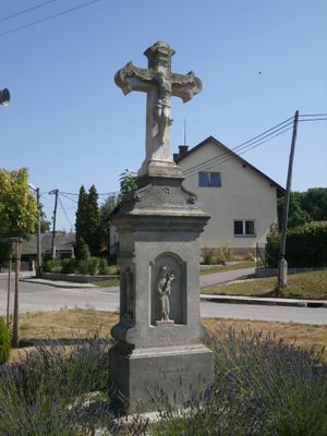 Cross at village green in Obruby, cross in Mladá Boleslav District
