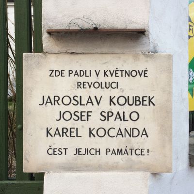 Pamětní deska Jaroslava Koubka, Josefa Spalo a Karla Kocandy na Žižkově, pamětní deska v Praze