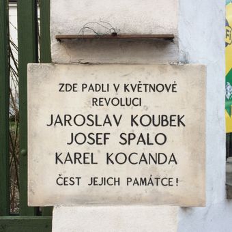Pamětní deska padlým v Květnovém povstání na domě Koněvova 1484/84 na Žižkově
