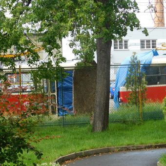 Pamětní deska Josefu Levinskému na zdi vozovny Žižkov