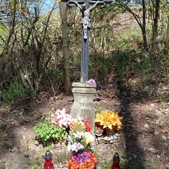 Cruz, small religious monument on the way to the cemetery in Protivín, Czech Republic