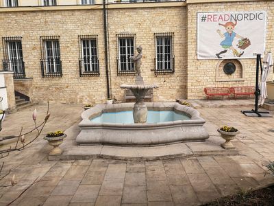 Kašna v zahradě švédské ambasády na Hradčanech, water cistern in Czech Republic