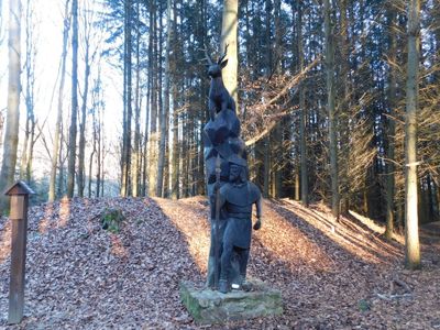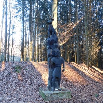 Socha svatého Huberta v lese V Peklech východně od Klínce, statue in Klínec, Czech Republic
