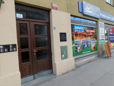 Pamětní deska Milušky Šulcové a Aloise Kally na domě Zelená 1570/14a v Dejvicích