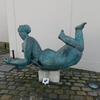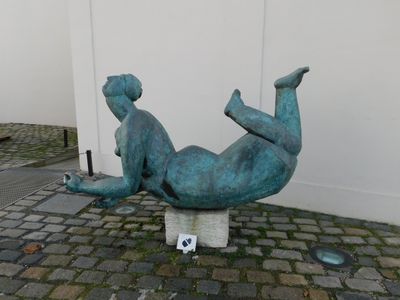 Socha ležící postavy na nádvoří Sovových mlýnů na Kampě, statue in Prague, Czech Republic