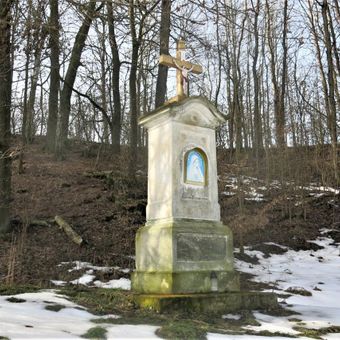 Podstavec kříže u vstupu do areálu kostela v Žibřidicích