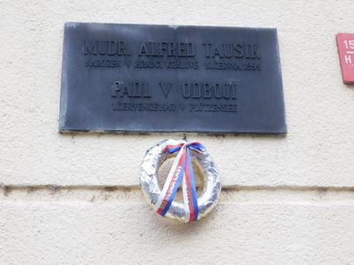 Pamětní deska Alfréda Tausika na domě Charlese de Gaulla 627/6 v Bubenči, pamětní deska v Praze