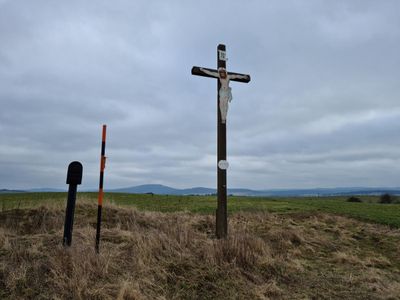 Kříž v poli u dálnice severně Žebráku - Sedlce, pamětní kříž v obci Žebrák v okrese Beroun