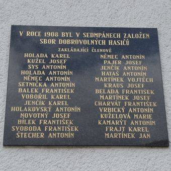 Pamětní deska Sboru dobrovolných hasičů v Sedmpánech, pamětní deska v okrese Benešov