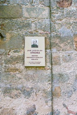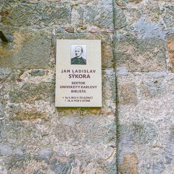 Pamětní deska, pamětní deska Jana Ladislava sýkory, rektora Karlovy university na kostele sv. Jiljí v Železnici