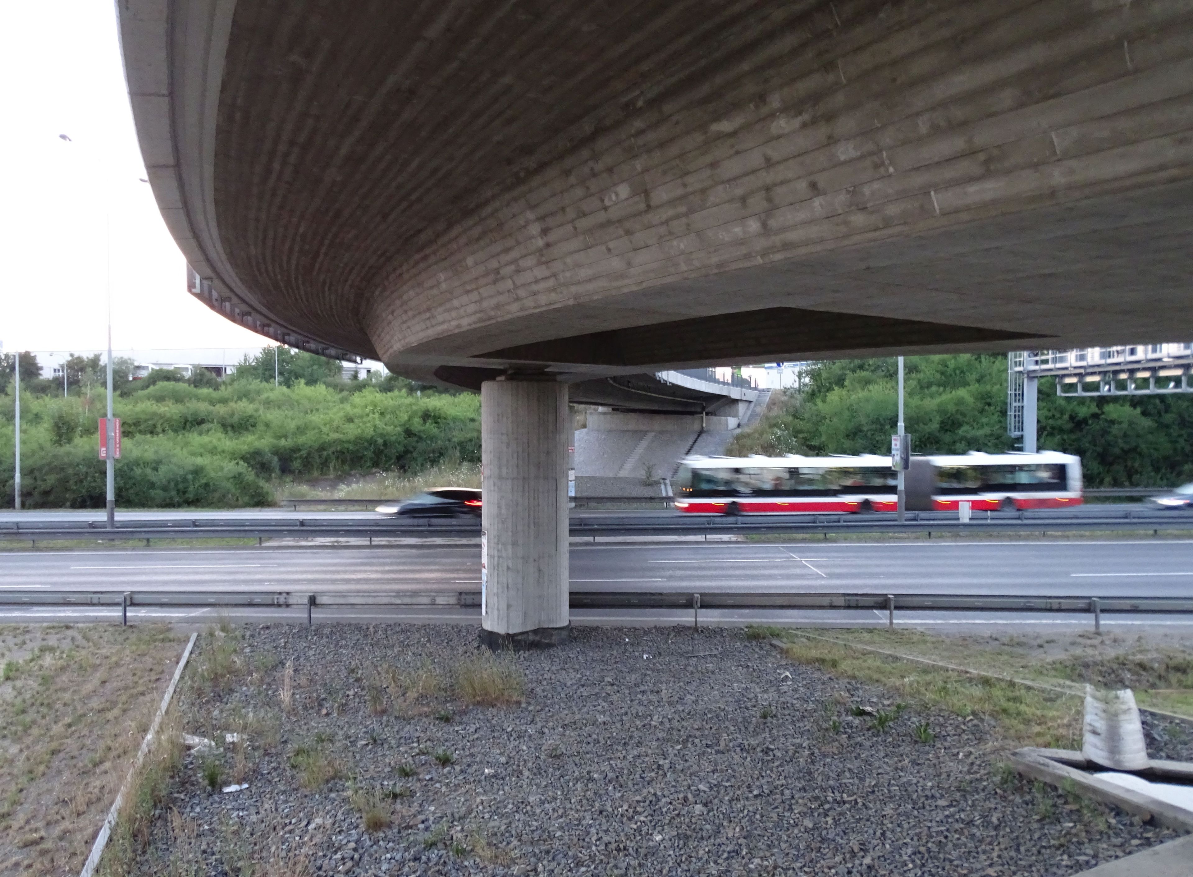 Bridge of Ke garážím street over Jižní spojka, most v Praze-Michli u autobusových garáží Kačerov