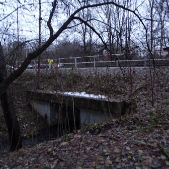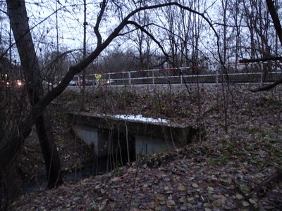 Most ulice K jezeru přes Košíkovský potok, bridge in Hostivař, Czech Republic