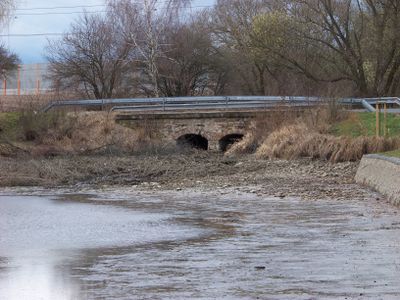 Most ulice K Řeporyjím přes Dalejský potok nad Třebonickým rybníkem, most v Praze-Třebonicích