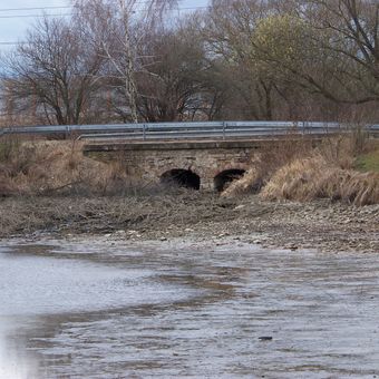 Most ulice K Řeporyjím přes Dalejský potok nad Třebonickým rybníkem