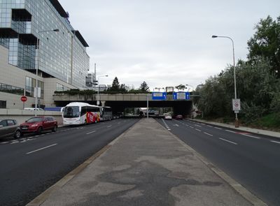 Bridge of Hotel Hilton over Rohanské nábřeží, bridge in Karlín, Czech Republic