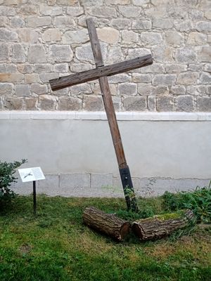XI. zastavení křížové cesty u kostela na Hluboké, kříž u cesty na území Hluboké nad Vltavou