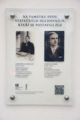 Pamětní deska Jaromíra Klimeckého a Ladislava Krále, pamětní deska v Berouně na Husově náměstí na budově evangelického sborového domu