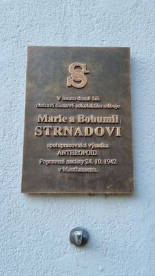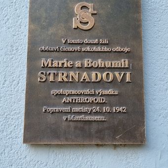 Pamětní deska manželů Strnadových na domě Pivovarnická 1844/15 v Libni, pamětní deska na území Prahy