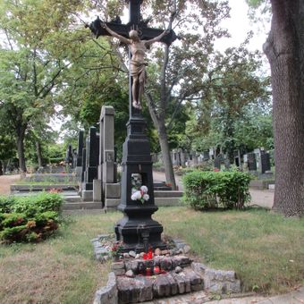 Centrální kříž na hřbitově ve Vršovicích, kříž u cesty na území Prahy