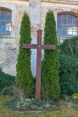 Kříž, kříž u kostela Nejsvětější trojice ve Zbyslavi