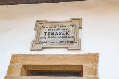 Pamětní deska, pamětní deska na rodném domě skladatele Václava Jana Tomáška ve Skutči
