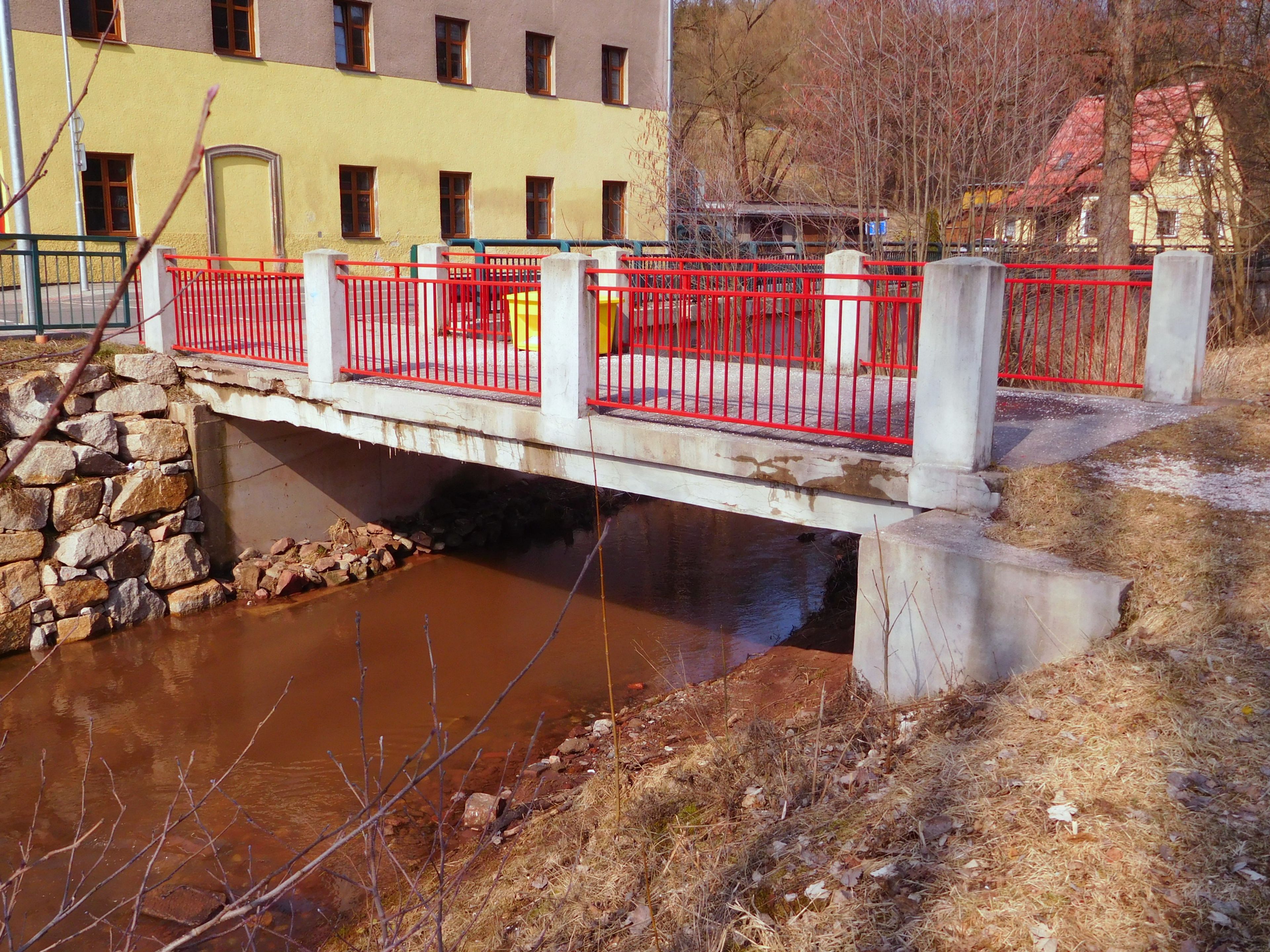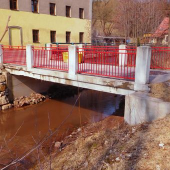 Bridge of I/14 road over the Bolkovský potok in Rudník near house no. 54