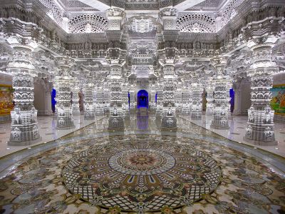 Cada pieza de piedra del templo fue tallada en India por artesanos especializados antes de ser ensamblada en Nueva Jersey según principios arquitectónicos antiguos.