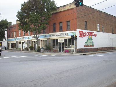 El Distrito Histórico de Frog Level abarca 16 edificios y una estructura, con construcciones de ladrillo y armazón del inicio del siglo XX.