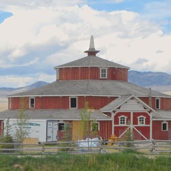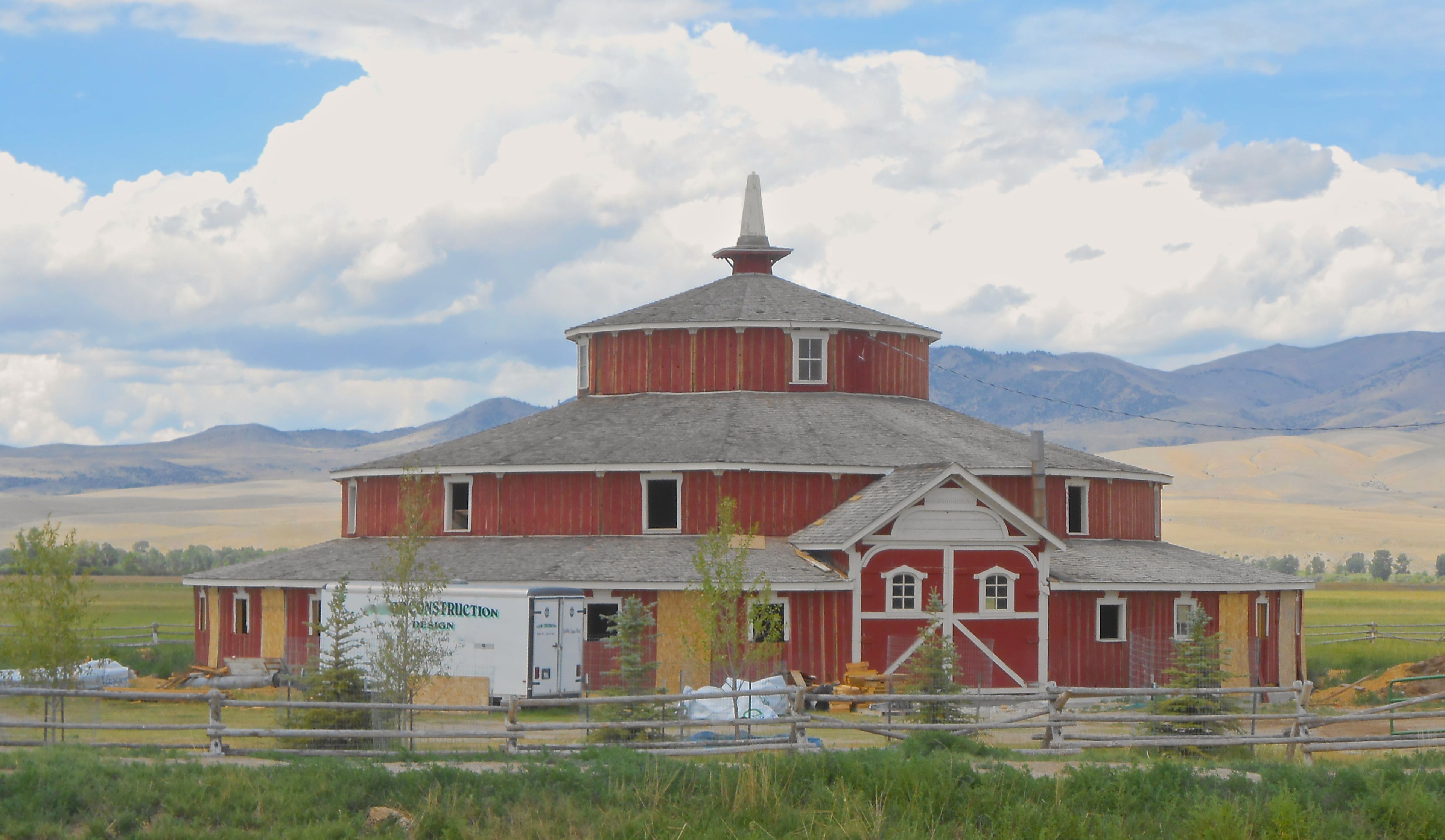 El establo de madera de tres pisos presenta un diseño circular con un diámetro de 30 metros y se eleva 15 metros cerca del Valle del Río Jefferson.