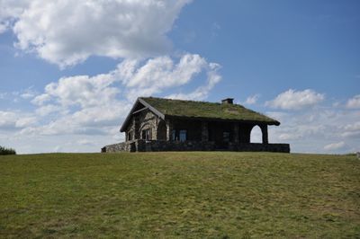 La estructura de piedra Beech Nut, construida en 1914 con técnicas noruegas de techo de césped, permanece en la cumbre como testimonio arquitectónico.