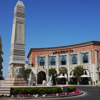 Tivoli Village presenta calles empedradas y arquitectura de estilo europeo en 28 hectáreas de tiendas, restaurantes y espacios de oficinas.