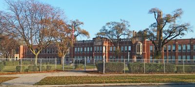 Elizabeth Cleveland Intermediate School, Edificio escolar gótico colegial en Detroit, Michigan.