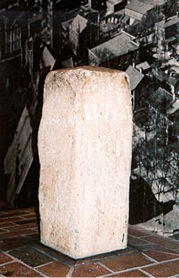 El poste de piedra de 1842 marcaba el terminal sur final donde Samuel Mitchell donó terrenos para lo que se conoció como state square.