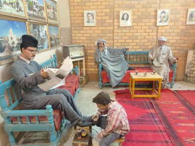 El museo presenta 385 estatuas de tamaño natural distribuidas en 77 escenas que representan actividades cotidianas y tradiciones de la sociedad bagdadí.