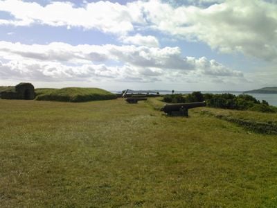 El Castillo San Miguel de Agüi se levanta sobre un acantilado a 33 metros sobre el nivel del mar, con muros de piedra y doce baterías de cañones.