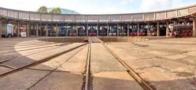 La estructura, construida entre 1929 y 1941, funcionó como taller de reparación de locomotoras de vapor del sur de Chile hasta los años 1980.