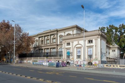El Palacio Errázuriz Urmeneta es un palacio neoclásico en la capital chilena construido con una estructura clara de tres partes. Una sección central de dos pisos está flanqueada por dos alas de un solo piso adornadas con columnas jónicas y corintias.
