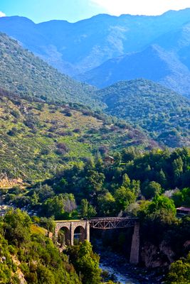 El ferrocarril conectaba Puente Alto con El Volcán mediante una vía estrecha de 600mm a través del valle del Maipo.