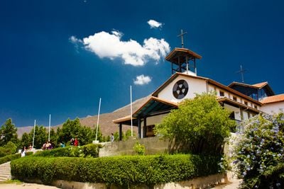 El Santuario de Santa Teresa de Los Andes es un convento de Carmelitas Descalzos en Rinconada compuesto por dos secciones conectadas con muros blancos y aleros de madera. Las estructuras fueron construidas con hormigón armado para resistir los terremotos comunes en la región.