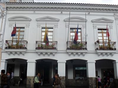 Casa de los Alcaldes, Edificio colonial en Plaza de la Independencia, Quito, Ecuador.