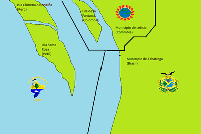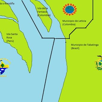 La Isla Santa Rosa emerge de las aguas de la cuenca del Amazonas en las coordenadas -4.227511, -69.956283, en el departamento de Loreto.