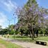 El parque es un lugar de encuentro para la comunidad, donde las personas se reúnen para hacer deporte, pasar tiempo en familia y socializar. Se observa la vida cotidiana del barrio: gente corriendo, niños jugando y grupos disfrutando de asados compartidos.